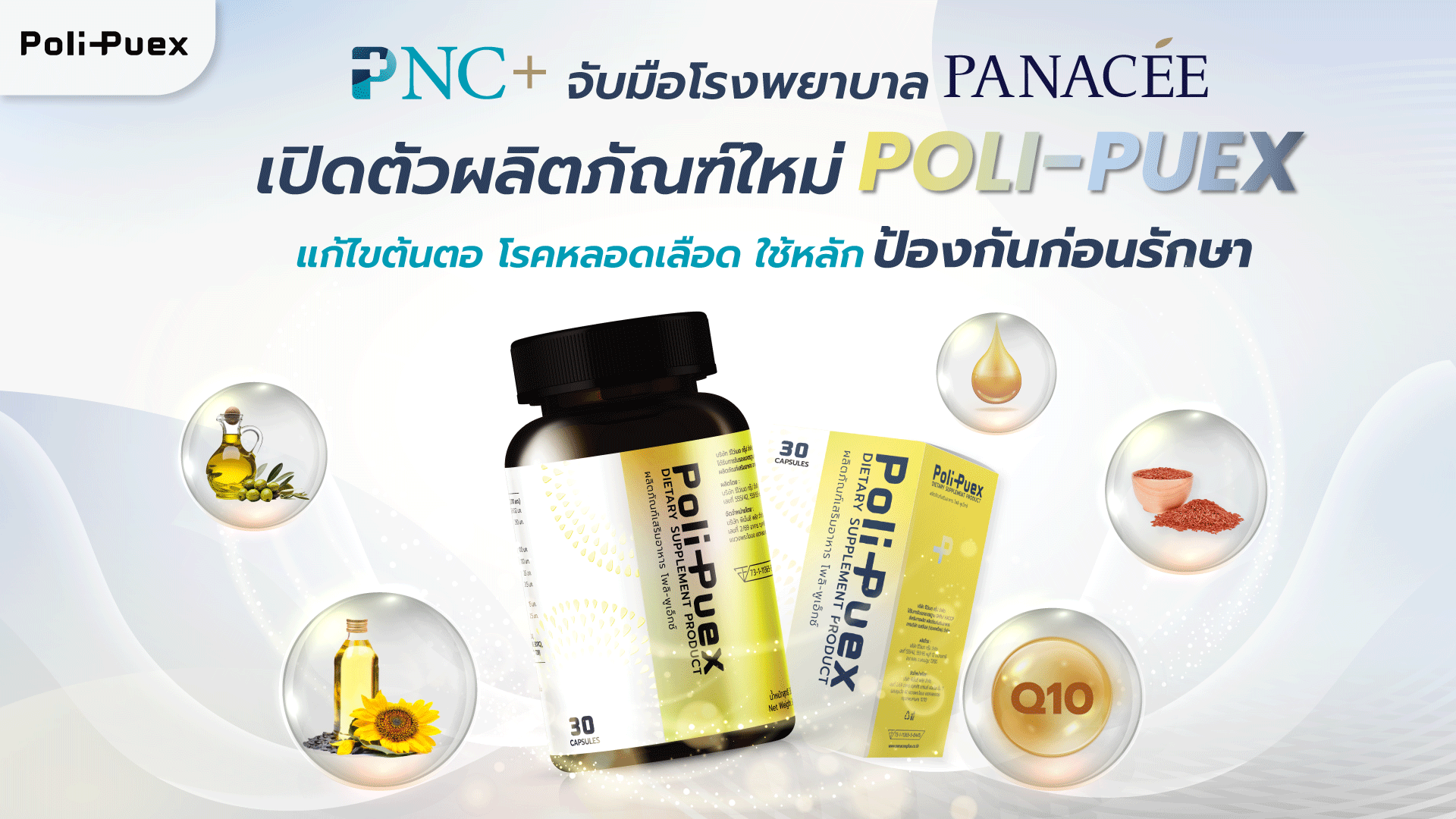 โดยศูนย์ค้นคว้าและวิจัยของ รพ.พานาซี ได้ผลิต Poli-Puex ขึ้นมาเพื่อตอบสนองหลักการ ป้องกันก่อนการแก้ไข เพราะค้นพบว่า มีสารสกัดจากธรรมชาติที่มีประสิทธิภาพสูง ที่ช่วยลดคอเลสเตอรอล ลดการอักเสบ เพิ่มการไหลเวียนของเลือด เพื่อมาดูแลปกป้องหลอดเลือด ไม่ว่าจะเป็น
